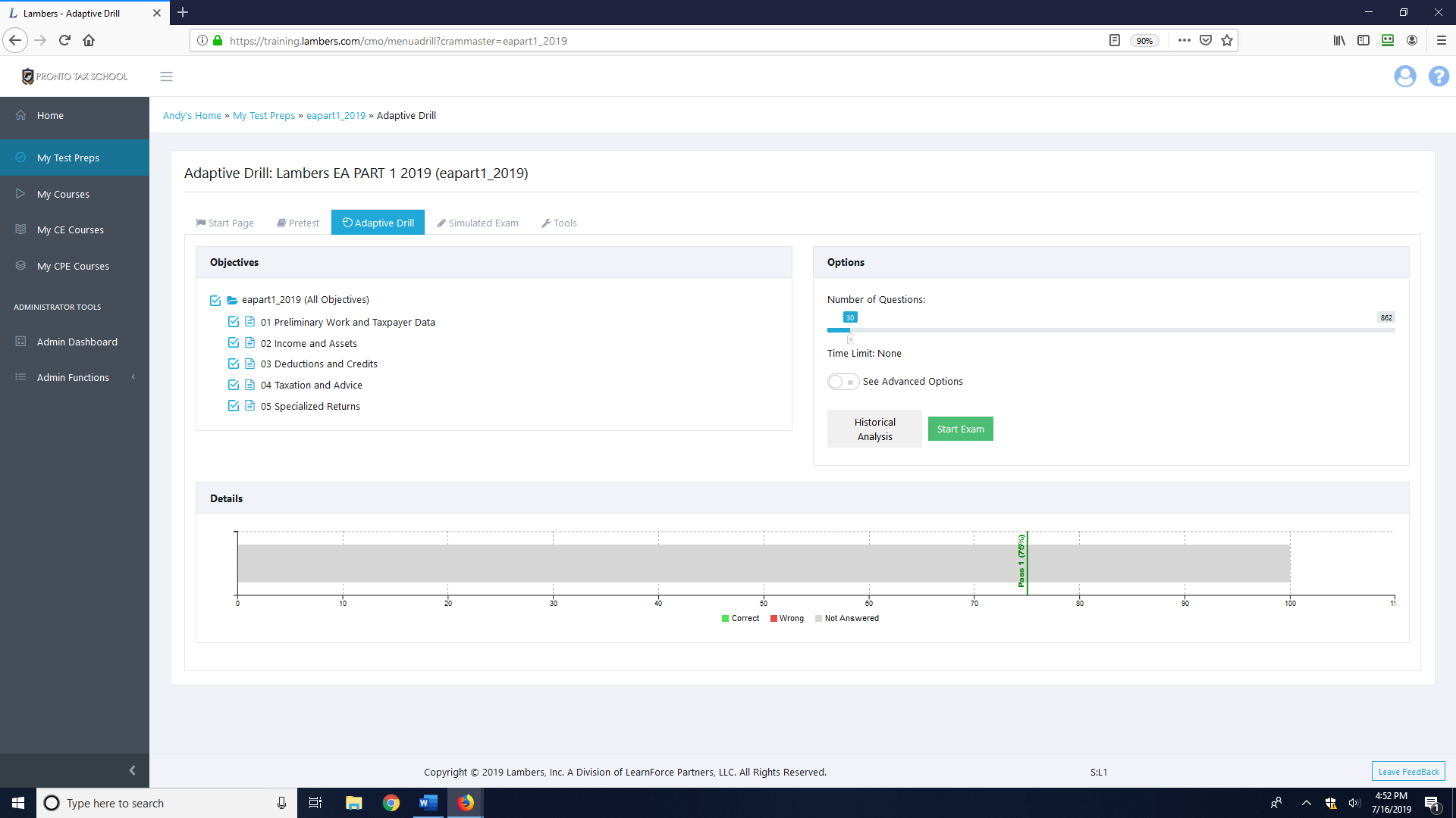Now that you know where you are now with our diagnostic pre-test, it's time to really dig into the core of our Program: the Adaptive Drills section. Our Adaptive Drills--a series of questions which mimic the real EA Exam--test you on every single topic area on the Exam, once again allowing you to focus your study time on shoring up weaker areas of your tax knowledge. Explanations are provided for every single question in the Adaptive Drills, including links to the IRS publication that pertain to that question! Using our Adaptive Drills will cement your existing, strong knowledge areas and shore up weaker areas of your knowledge. Using Adaptive Drills is the proven way to pass the EA Exam!
